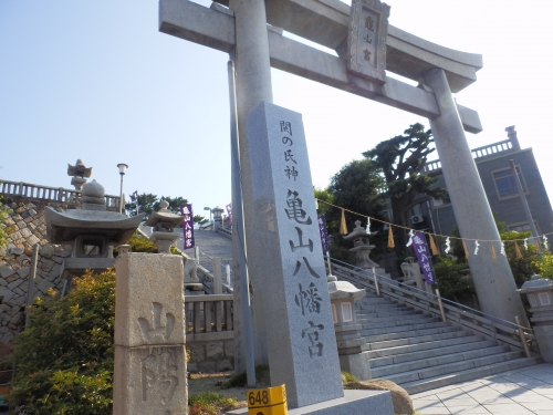 唐戸市場の目の前にある神社、それが平安時代(859年)の創建といわれている亀山八幡宮です。古くは航海安全を祈願したり、藩主たちが崇敬したりと、地元では氏神様として親しまれています。