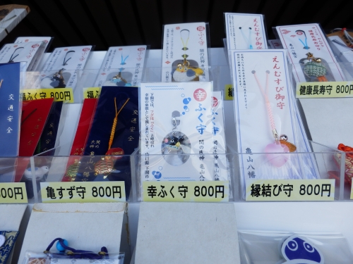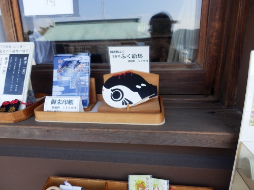 社務所を覗くとふぐの形をした「ふく絵馬」。お守りにもふぐが…かわいい…