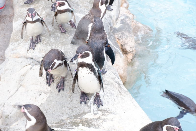 さらに見逃せないのが、地下1階から2階まで建物3フロア分のエリアで暮らすペンギン村。地下1階と1階にある屋内の「亜南極(あなんきょく)ゾーン」では、マカロニペンギンイワトビペンギンに出会えるほか、2階にある屋外の「温帯ゾーン」では、「フンボルトペンギン」が展示されています。