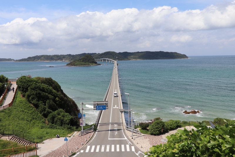 下関市の日本海に浮かぶ角島はドライブルートとしても有名です。特に本州から角島へと延びる角島大橋は、フォトジェニックなスポットとしてSNSを中心に一気に有名になりました。2000年に開通した橋で度々ドラマやCMで登場します。