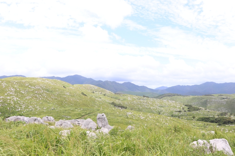 夏の緑の大地はもちろん、秋の夕日できらきら輝くススキに覆われた大地も絶景で、草原にの合間に顔を出す白い石灰岩は、まるでたくさんの羊が放牧されているどこか海外の景色のようにも見えます。カルストロードのドライブだけでなく、いくつものトレッキングルートがあるので、アクティブ派にもおすすめのスポットです。