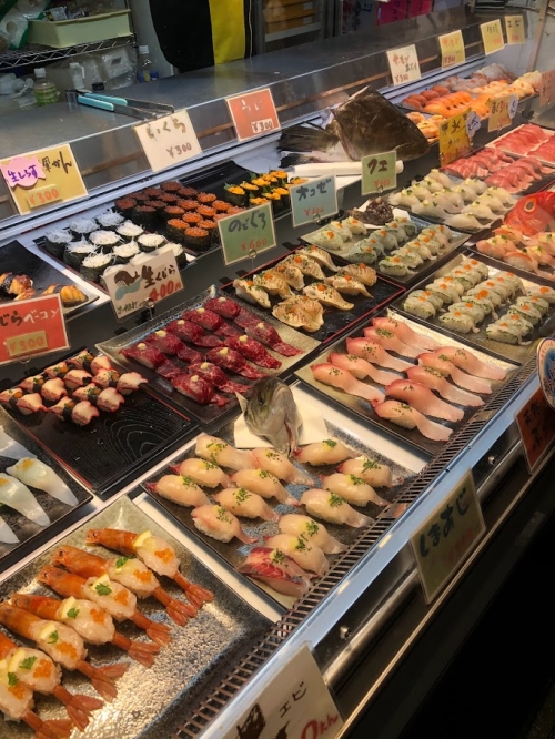 唐戸市場で毎週末(金土日祝日)開催されている活きいき馬関街。その日にあがった魚も握りやどんぶりにして市場に並びます。下関名物のふぐはもちろん、下関で捕れる新鮮な魚をいただけます。東日本から行く人にとってはなじみがなかったり、寿司として出てくるのは珍しいような魚もあるのでみているだけでも楽しいですよ。