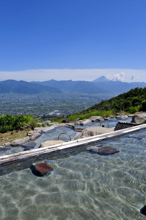 富士山や甲府盆地の絶景が楽しめる、大人気の天然温泉!