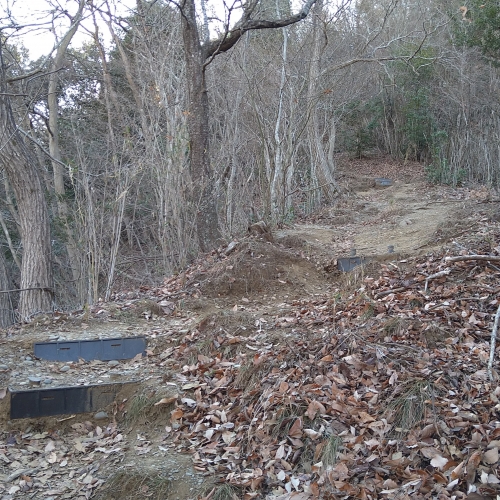 岩殿山の裏手へ回るようにして、畑倉登山口を目指します。「大月自動車学校」の看板を過ぎると、道路わきに「畑倉登山口」の看板があります。