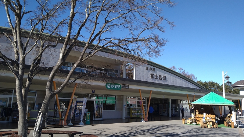 ふじさんミュージアムの道向かいにあるのが「道の駅富士吉田」です。富士吉田市の名産が買えたり、食事ができるのはもちろんですが、こちらの道の駅では、敷地内にある駐車場(富士山レーダードーム館近く)で富士山の湧き水を汲めるんです。