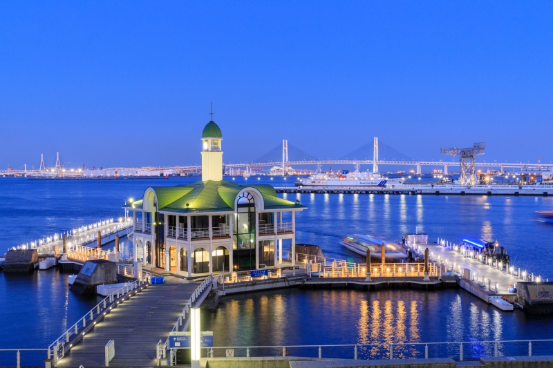 「ぷかりさん橋」は通称で、日本初の浮体式さん橋であり、ターミナルの建物もさん橋自体もプカプカ浮いていることから名づけられました。時計台のある西洋風の外観は、横浜のシンボルでもあり、とってもフォトジェニックなスポット。