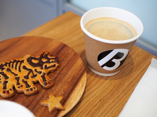可愛い恐竜型のクッキーなどの焼き菓子や、もちろんベーカリー直営なのでホットサンド(ハム&チーズ)等パンを使った軽食もコーヒーのお共に最適です。