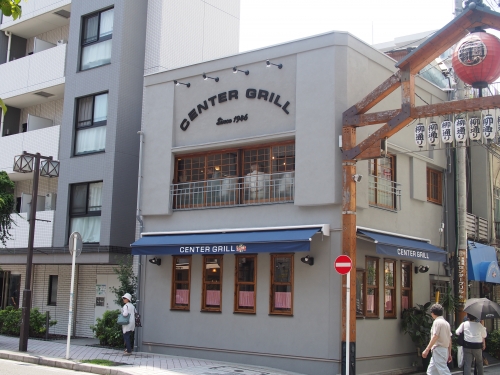 昭和21年創業のセンターグリル。2018年に増改築し、綺麗で広々としたスペースに生まれ変わりました。その一方、入り口は当時のままレトロな雰囲気を醸し出しているのがたまりません!