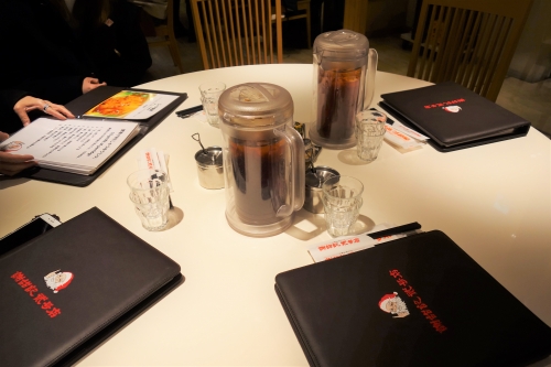 トッピングとして、辛みがきいたザーサイと醤油につけた白髪ねぎもついてくるので、ある程度お粥を楽しんだ後に、これらをトッピングして、変化を楽しむのもよいでしょう。熱々のお粥には、冷たいジャスミンティーもピッチャーでサーブされてきます。