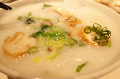 謝甜記こだわりのお粥は、生のお米から、乾燥カキ、乾燥貝柱、鳥一羽を丸ごといれて4時間も煮込まれています。お粥の誉め言葉に「花が咲いたよう」とありますが、まさにその通り、お米がふわっと花が咲いたようになっています。