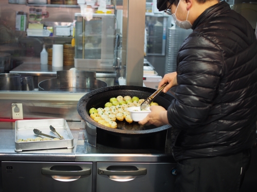 店先にあるテーブルには黒酢が用意してあるので、お好みでかけて食べてくださいね。週末ともなると、大行列ができる人気店です。