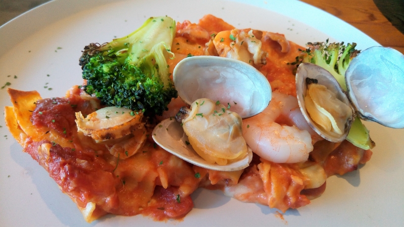 こちらは追加料金なしでいただけるレギュラーメニューのメインディッシュ。「ベーコンほうれん草オムレツ」は軽めに仕上げたオムレツとトマトソースが絶妙のバランスで、やさしいお味。小さなお子さんへの取り分けにもいいですね。「シーフードラザニア」は大ぶりの新鮮な魚介がトッピングされ、食べ応えがあります!