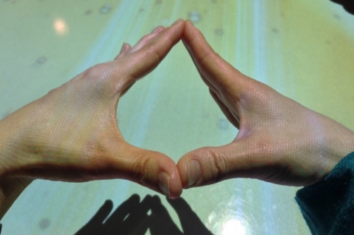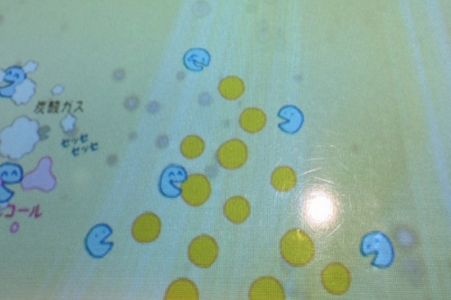 また、テーブルの上に手で滴の形を作るとそこにビールの発酵には欠かせない酵母が現れ、発酵までの様子をアニメーションで見られたり、VRメガネをかけることで缶の目線でコンベアーの上を移動して行く様子を見る事ができます。