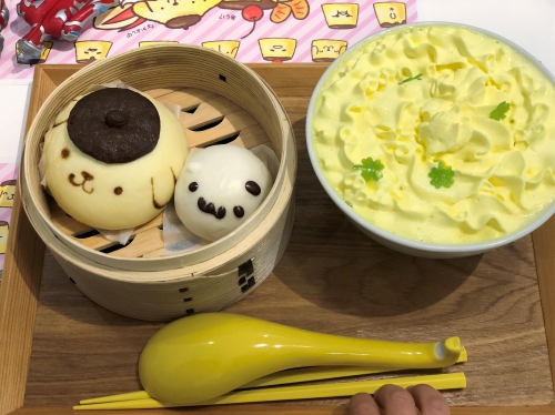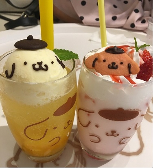 メニューは、お食事系、デザート、ドリンクなどが豊富に揃っています。もちろん、すべてポムポムプリンのキャラクターをモチーフにしているので、かわいさは抜群。