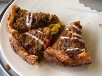 写真:旅田サトシ クリームチーズケーキ(チェリーソース・550円+税) |  写真:旅田サトシ マイカップヌードルファクトリー |  写真:旅田サトシ アリゾナビーフパンプキンパイ |