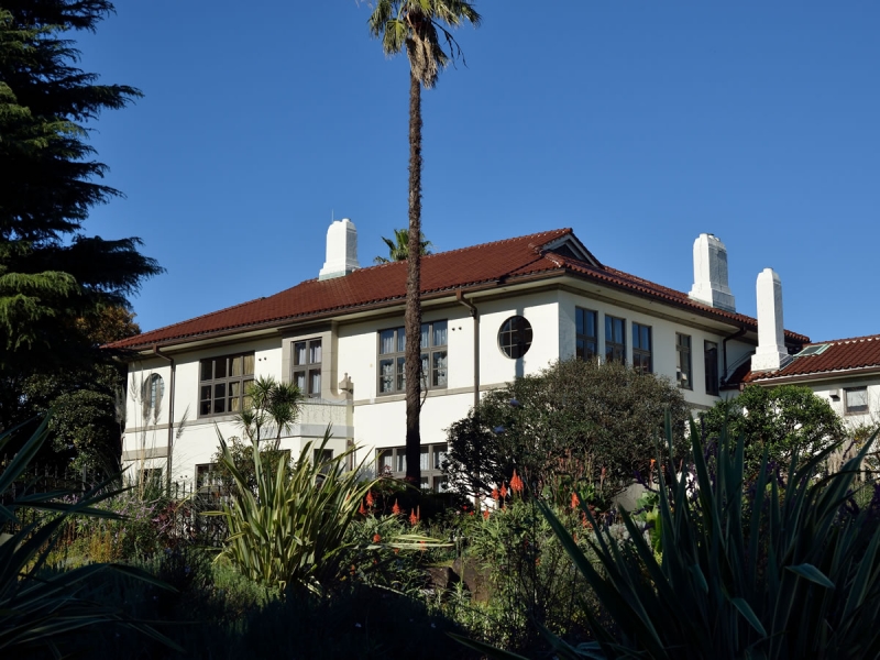 600坪の敷地に建つこの建物は、現存する戦前の山手外国人住宅のなかでは最大の規模で、スパニッシュスタイルを基調としたデザインです。