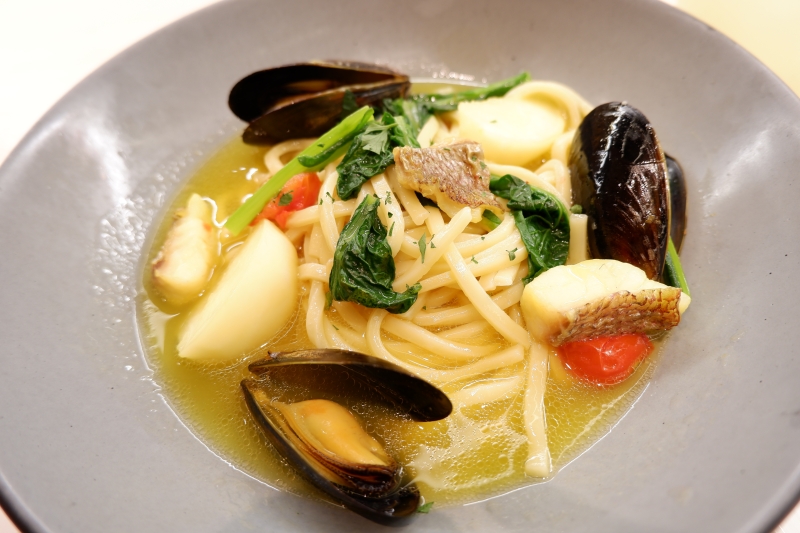 出典:tripnote.jp横浜市場直送の真鯛、ムール貝と旬野菜のスープ仕立てパスタ(税込1,400円)