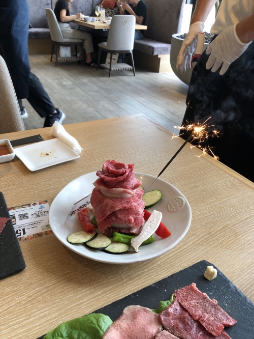 A4・A5ランクの黒毛和牛は絶品!おすすめはお店の名物サーロインユッケや、和牛の握りずしなど、女子の心を鷲掴みにするメニューたち。お肉を花束のように盛り付けた「肉ケーキ」は、メッセージプレートも付けてくれるので、お誕生日などにぜひ頼んでみて。