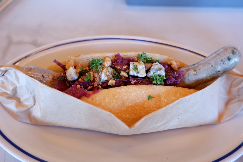 人気の「ホットドッグ」は、神奈川・秦野市のブランド豚「門倉ポーク」のソーセージを使用。ゴルゴンゾーラハニーやアボカドサルサ&チーズなど、6種類の味を味わえます。そのほか、鎌倉ジャーキーやチーズ、ピクルスなどおつまみ系も豊富に揃っているので、昼からビールで乾杯!という女子会にはもってこいのお店です。