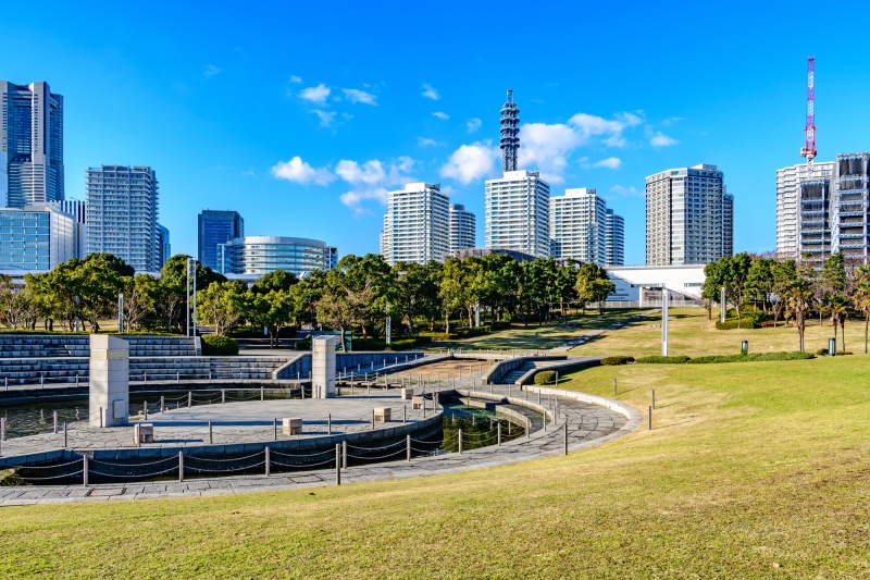 園内はたくさんの木々や緑に囲まれ、この周辺で働く人や住んでいる人々の憩いの場です。また毎年夏には「みなとみらい大盆踊り」が開催され、多くの人でにぎわいます。