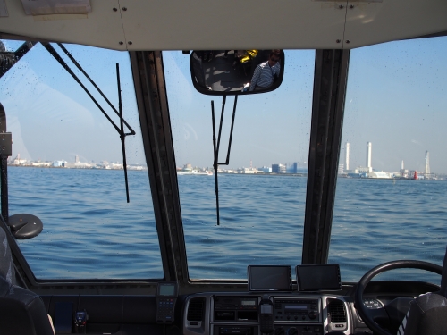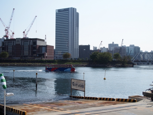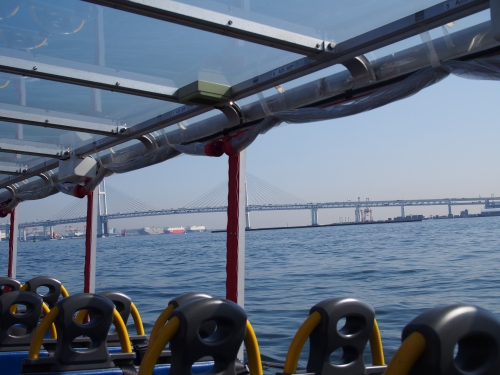 船になったスカイダックは、みなとみらい地区の華やかな街並みを眺めながら進みます。海上では、カヌーの練習をしている人や小型漁船に手を振りながらしばし優雅なクルージングを楽しみましょう。