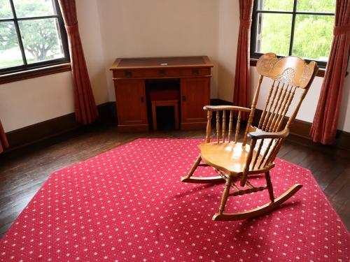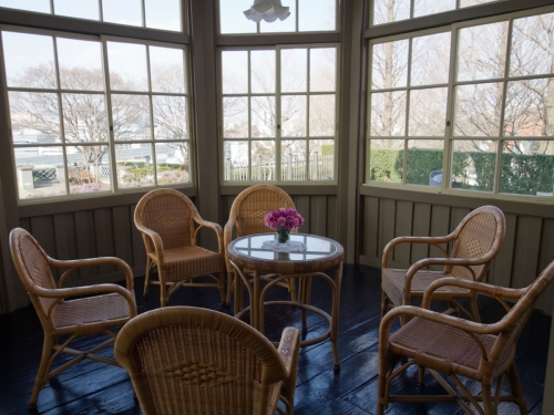 内部は無料で見学でき、一階には暖炉つき応接室、リビング、サンルームなど、そして二階には山手の洋館に関する資料を展示しています。