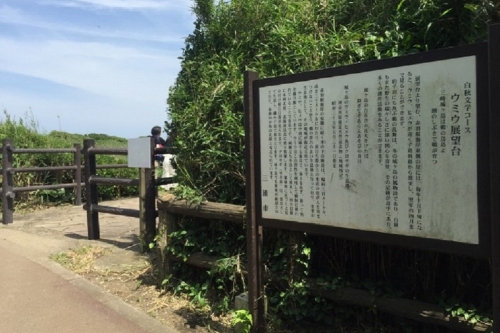 三崎口駅から城ケ島行きのバスで30分、白秋碑前(はくしゅうひまえ)で下車し、さらに徒歩12分の所にウミウ展望台があります。冬になると、越冬する為に飛来してくるウミウがこの展望台から見られることから名付けられた場所で、赤羽根海岸東側の絶壁を見ることができます。