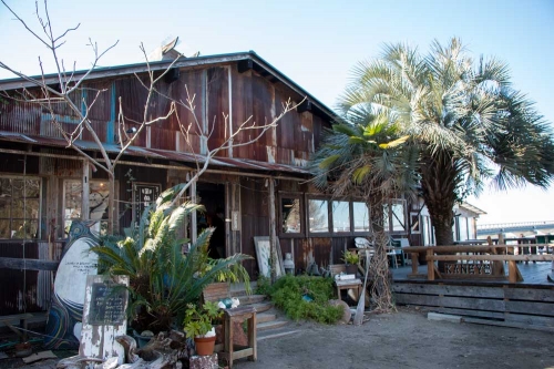 かねよ食堂は元々、夏の間だけオープンする海の家だったそうですが、現在は通年営業しており、多くの人々が訪れる人気店に成長しました。店内は開放感のあるアーティスティックな空間で、南国の海辺の雰囲気をかもし出しています。ライブコンサートが開催されることもあるそうですよ。
