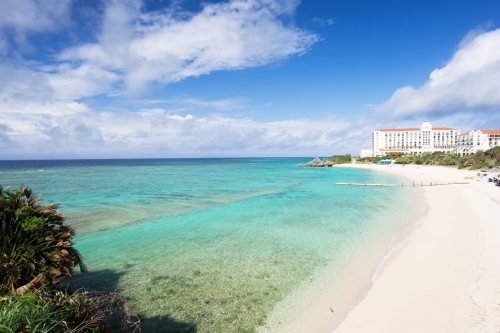 白い砂浜と海に輝く海!本島中部を代表するリゾート感満載の天然ビーチ