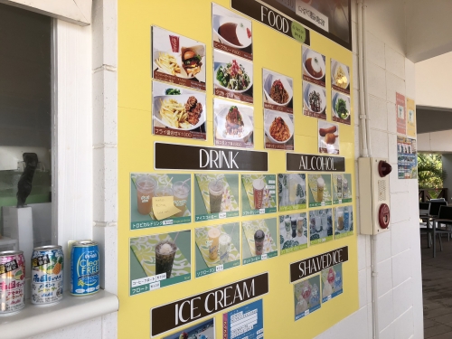 軽食を出しているカフェはメニューも豊富。お店に用意してあるinstagram用ボードを持って撮った写真を投稿すると、沖縄名物のブルーシールアイスクリームが1スクープ分の料金でダブルにして貰えるそうですヨ♪