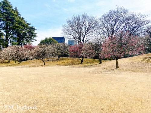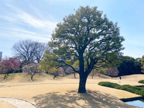 他にも紅白で並ぶ梅の木や、大きな楠などが植えられており、四季折々の庭園を彩ります。