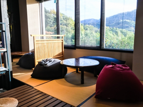 ロビーに入ってすぐ左手にGensen Caféはあります。こちらも畳に屏風が置かれていたりと、とても和を感じる空間。THE RYOKAN TOKYOにはもちろん入浴施設もあるので、湯上りにこちらの畳の上でくつろぐというのも良いかもしれません。