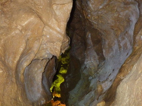 洞内には、床面から伸びる石筍よりも天井面や壁面から伸びる鍾乳石が多くあることも特徴の一つ。特に「針天井の間」では、低い天井から伸びた数cmの鍾乳石がその先端に丸いボールのような水滴をまとっており、まるで満天に輝く星空を眺めているような気分にさせてくれます。