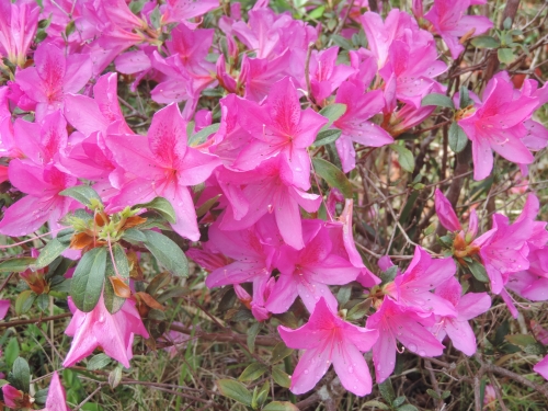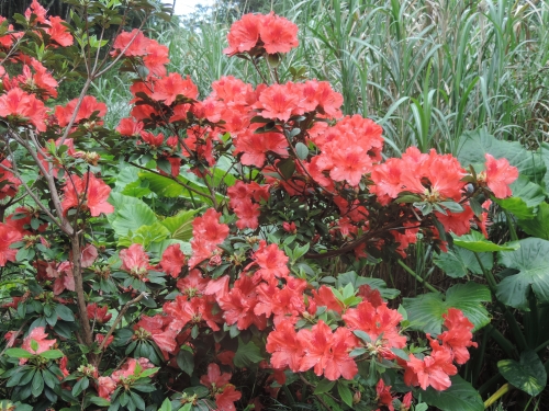 慶良間空港の目の前から展望台へ登る道が繋がっています。入口(入り口には柵が設けられています扉を開けて入ります)から展望台までは約10分ほどの登りとなり、4月上旬には色とりどりのツツジの花を楽しめます。